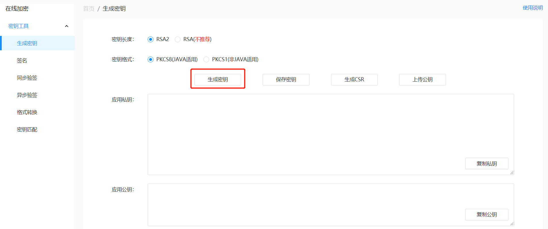 公私鑰在線生成工具地址:https://miniu.alipay.com/keytool/create