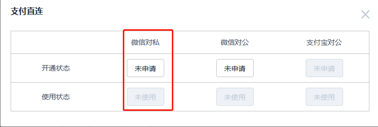 登錄泊鏈后臺可以點擊直連支付的狀態(tài)“未使用”,進行下一步的申請操作。