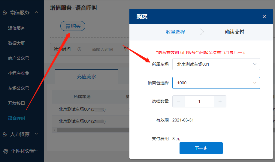 1、車場的上級廠商給該車場購買了語音呼叫的增值服務