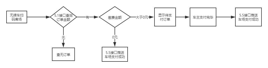 3、無牌車離場:泊鏈廠商后臺生成對應(yīng)離場通道二維碼,車主用入場掃碼用的軟件掃碼,泊鏈會推送消息到管理對應(yīng)出口通道的電腦上請求離場結(jié)算,如無需繳費會自動放行,如需繳費車主支付完對應(yīng)費用,泊鏈通知車場放行。